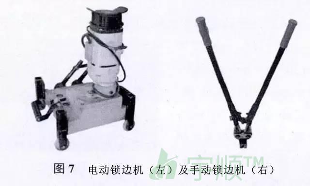 1)電動鎖邊機,用于鎖緊板肋,使板與固定座連結牢固,見圖7(左)。